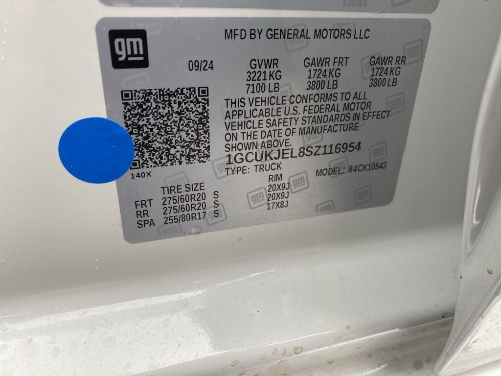 Preferred Equipment Group 3LZ: Trailer Side Blind Zone Alert; Chrome Assist Steps; Driver Memory; Perforated Leather Seat Trim; SiriusXM with 360L Trial Subscription; Power Sliding Rear Window with Rear Defogger; Safety Alert Seat; Ultrasonic Front and Rear Park Assist; Trailer Camera Provisions; Electric Rear-Window Defogger; Theft Deterrent System (unauthorized Entry); 20" X 9" Painted Aluminum Wheels; Front Rain-Sensing Wipers; Heated Steering Wheel; 120-Volt Interior Power Outlet; Heated Driver and Front Outboard Passenger Seats; Front Bucket Seats; Color-Keyed Carpeting Floor Covering; OnStar Services Capable; 2nd Row Heated Outboard Seats; Power Front Passenger Windows with Express Up/down; Front Carpeted Floor Mats; Rear Carpeted Floor Mats; 12.3" Multicolor Reconfigurable Digital Display; Body-Color Painted Mirror Caps; Power Rear Windows with Express Down; Integrated Trailer Brake Controller; HD Surround Vision; Ventilated Driver and Front Passenger Seats; Power Tilt and Telescoping Steering Column; 275/60R20SL AT BW Tires; Keyless Open and Sta